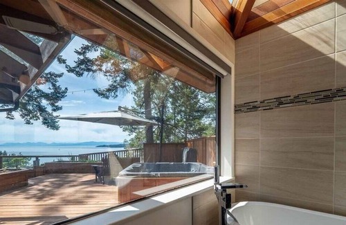 Stunning views from the endless deck. Enjoy the quiet and peaceful outlook to the South West in beautiful Halfmoon Bay. Basque in the hot tub from your perch. This contemporary home is perfect for entertaining and steps from trails, water sports, secret cove marina, Thormanby Island and smugglers cove. More than enough room for your family and friends with a separate kitchen and recreation room downstairs. All the amenities you could ask for.