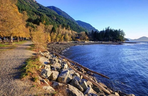 Reconnect with the outdoors... Located within a short walk to Howe Sound ocean and stones throw access mountains. Located in small beachside community within the Squamish region, 45 mins north of Vancouver and 50 mins south of Whistler. Bright brand new suite, full kitchen, washer/dryer, King bed in room, and Queen sofa bed. Full access to suite with private entrance and small patio with ocean view