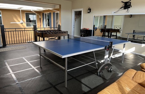 This villa is very easy to find and close to highways. Upon arrival, you will find a private entrance with a gated driveway leading up to the secluded home. The two-story Villa boasts 5 - 6 spacious bedrooms & simi-private loft can sleep 2-4, 4.5 bathrooms to comfortably accommodate 17-20 guests (with additional 1 air mattress 1 futon). Relax in the Zen courtyard or by the quaint garden or in the backyard covered patio to enjoy beautiful views of natural landscape of the majestic mountains with your morning coffee or afternoon tea. Put your competitive skills to the test with ping pong or mini-putt. Be entertained with 5 smart TVs, and an expansive lawn and yard.