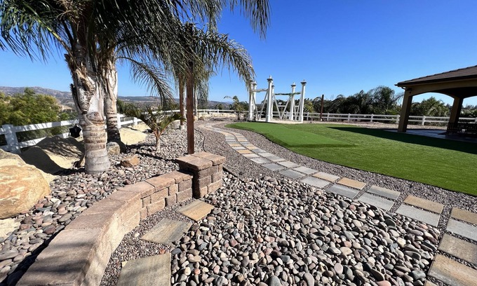 Easy accessible to a beautiful home sits on top of a secluded hill & overlooks East San Diego’s mountains, allowing 360 Panorama views from anywhere on the property. The Villa offers a gorgeous kitchen, stainless-steel appliances, 2 refrigerators, 2 dishwashers, high ceilings, lots of natural light, 2 staircases, a peaceful indoor courtyard, beautiful landscaping, & indoor game room; providing a luxurious & cozy getaway for guests.