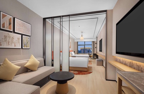 Hilton Garden Inn Chengdu Chunxi Road Center offers 174 air-conditioned accommodations with safes and complimentary bottled water. Beds feature Select Comfort mattresses. 65-inch LCD televisions come with cable channels. Bathrooms include bathtubs or showers with rainfall showerheads and hydromassage showerheads, bathrobes, slippers, and designer toiletries.