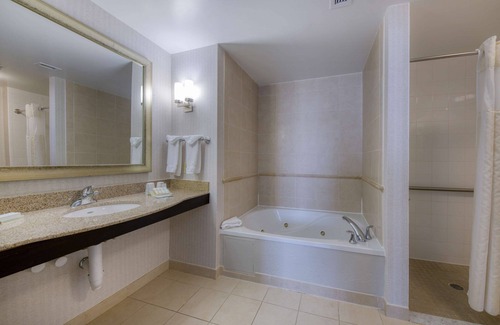 Recreational amenities at the hotel include an indoor pool and a 24-hour fitness center.