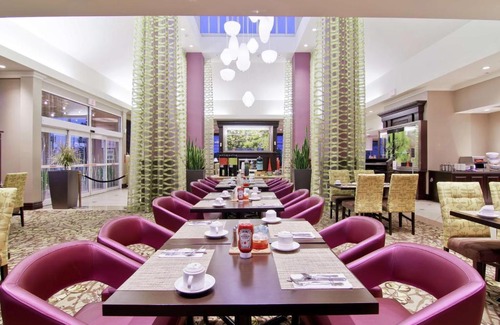 Located off Highway 401 in Ajax, Ontario, this hotel offers convenient facilities and services for a restful stay just minutes from a variety of restaurants, shopping and fine golf courses. Hilton Garden Inn Ajax is about 20 miles from downtown Toronto. The Slots at Ajax Downs casino is within one mile of the hotel and Deer Creek Golf & Country Estates is about 7 miles away. Toronto International Airport is 35 miles away. Enjoy on-site facilities such as an indoor heated pool, hot tub and fitness center at Hilton Inn Toronto. In the evening, have dinner at the Great North American Grill or order evening room service. The 24-hour Pavilion Pantry convenience store is also available for snacks and beverages.