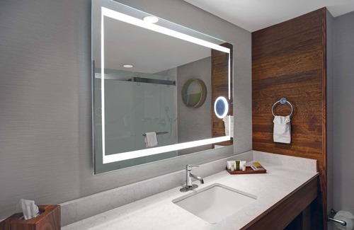 Hilton Hasbrouck Heights/Meadowlands offers 355 accommodations with MP3 docking stations and laptop-compatible safes. Pillowtop beds feature premium bedding. 42-inch LCD televisions come with premium cable channels. Bathrooms include shower/tub combinations, complimentary toiletries, and hair dryers.