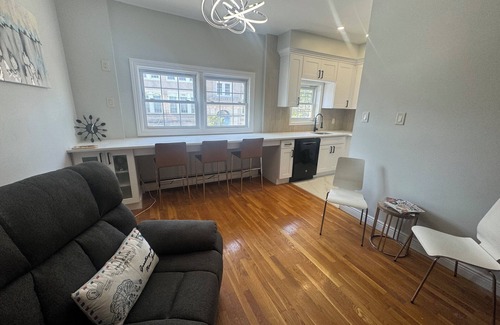 This apartment is located on the second floor of a three unit house and offers brand new appliances, renovations, spacious bathrooms at bright, tall ceilings and spaces. Comfortable beds and Luxury lonens. All of your essentials provided. Backyard space available for grilling and small fires.