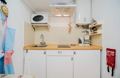 This little duplex is perfect for two persons (one real bed 140x200). It consists of kitchenette with dining and living area on the first floor and sleeping room with bathroom on the upper level (no doors between floors). It's situated in Alfama, historic center of Lisbon, in a new, traditional, fully refurbished building.