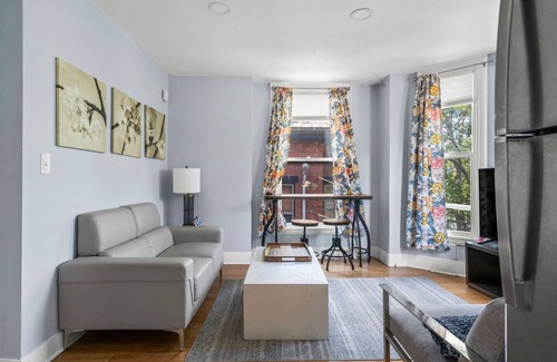 THE SPACE: Set within a historic State Street building, this spacious apartment features classic details including original hardwood floors, high ceilings, and tall windows flooding the rooms with natural light, juxtaposed with a modern renovation. Relax in tastefully decorated living areas, enjoy meals prepared in a well-equipped kitchen, and unwind in cozy bedrooms appointed with quality linens. This home effortlessly combines timeless elegance with contemporary conveniences.