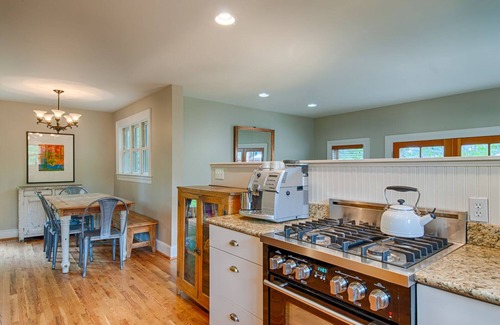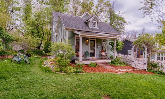 This 1900 landmarked home has been beautifully and fully remodeled, with an open floor plan that maintains its’ old world charm with original wood floors and character throughout the house. The home has a warm and inviting feel, 10 foot ceilings on the main floor with faulted ceiling on the upper level. The upstairs is an oasis with views of the flatirons, a bathroom that includes a soaking tub and shower to relax in, a soft baby alpaca rug and a bookcase of books (just in case you want to linger inside a bit). On the lower level, the house has two bedrooms with a beautiful bathroom with heated floors, shower and tub; and a play room. All bedding, mattresses, towels, rugs and cleaning supplies are organic and natural. The house hosts a large number of windows so you are connected to nature. Original art throughout the house. The main floor was designed for family and social time, with a kitchen that opens to both the living room and dining area. French doors in the living room open to the beautiful backyard. A second living room is located in the front of the house. The spacious yard features seasonal apples, a large patio for outdoor meals, a gas grill, and play house. The covered front porch is a relaxing place to sip morning coffee or a cool drink in the afternoon. Cruiser bikes, snowshoes, and yak tracks are available for our guests.