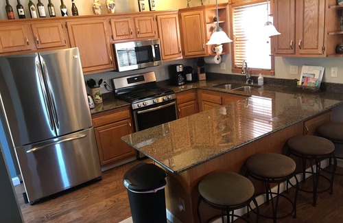 There is an apartment above the detached garage that is occupied by the owners during the off season (fall through spring). We happily accept well-trained dogs in our home, the backyard is fenced in.