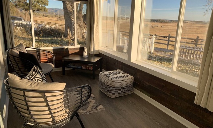 The house is situated on a 320 acre cattle ranch. It was built in the early 1900's with the original part of the house built with adobe. The interior has been updated using repurposed barnwood and rusty tin from a local barn. The living area is a spacious open floorplan with a kitchen that opens to a diningroom, livingroom and sunroom. The best room in the house is the sunroom which has large picture windows on all of the walls that overlook the ranch. The main bedroom has a king sized bed. The second bedroom is in the original small adobe room and has a full bed. The 3rd bed is a hide-a-bed in the livingroom. If additional sleeping arrangements are needed, we can provide an air mattress. The home features beautiful views, a big mature yard that is secluded and has a locked entrance gate. There is an outdoor patio as well as a pergola in the yard. The house is within 30 to 45 minutes of Durango, Pagosa Springs, 2 ski resorts, biking, hiking, hunting and fishing. There are also several native american cultural sites including Mesa Verde, Chimney Rock, Aztec Ruins, and Chaco Canyon. National Forest is 5 miles north of the ranch. If you are looking for a Southern Colorado experience this is the place.