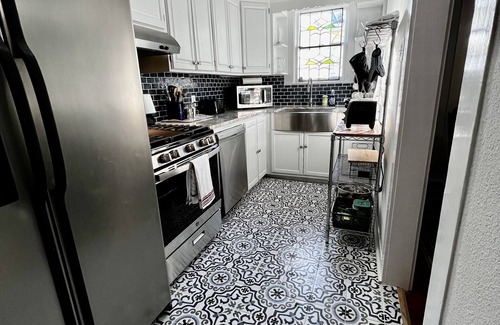 Pleasant 119 year old renovated home. Original hardwoods, architecture, and 14ft ceilings throughout. Fully stocked kitchen , and walkable distance to many eateries, night life, and local attractions.