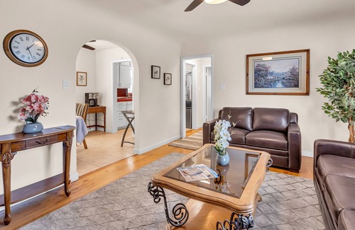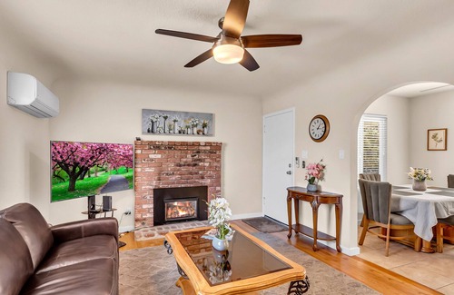 Walking distance (2-3 minutes) to Historic Downtown Folsom. Nice late 1950's cottage, very cozy and warm space! Walking distance to world class restaurants / shops / entertainment / weekend festivals, American River-Johnny Cash walking/biking trail 5 minutes away. 6 miles to Lake Folsom, ranked one of the best/most popular lakes in the entire State of California. Fishing in nearby Folsom Lake, Lake Natoma, and the American River for Bass, Trout, Catfish, & Salmon (California State Fishing license required). We are centrally located to ALL that Beautiful Folsom has to offer! Flooded with tons of natural light, our bright cottage can easily accommodate a small family up to 4 people. You’ll enjoy your own keyless entry, comfortable plush queen beds (one in bedroom, other is a sofa bed in living room), living-room fireplace with gas insert, 2 TV's (one 43" in bedroom & one 55" in living room), and all new LG appliances in kitchen. Stay with us!