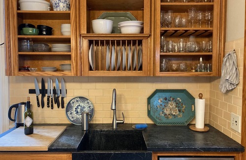The Tower House is a Victorian family home built in 1879 and brought back to be a welcoming single family home in 2021. You'll find it to be a convenient and comfortable base for exploring the Finger Lakes as well as a great space for entertaining and events. There is a fully equipped gourmet kitchen with casual dining spaces as well as a formal dining room that seats 12. The main floor has sitting rooms, a half bath and two covered porches perfect for morning coffee with the deer and birds or an evening cocktail watching fireflies.