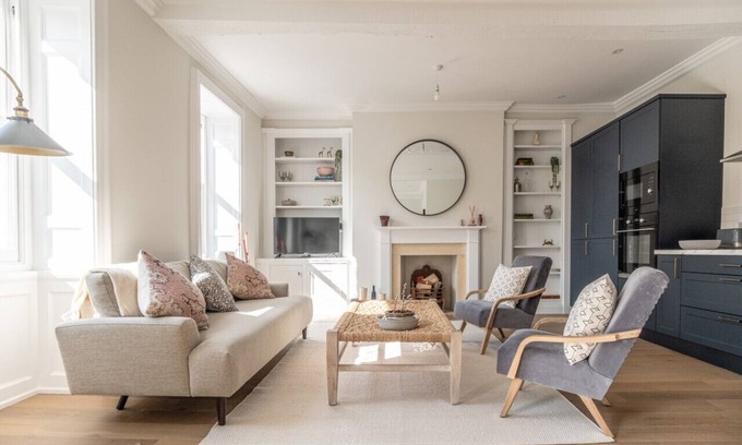 As you enter the charming Grade II listed building, you will be welcomed by the communal entrance and find our apartment on the first floor. Walking into the home, you will be immediately drawn to the sun-soaked open-plan kitchen, living room and dining area, perfect for relaxing after a busy day exploring.