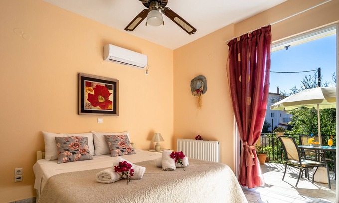 The apartment is ground floor with parking available and is very close to a main road leading to Argostoli town.