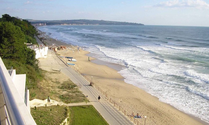 3 stars, reception, 1 restaurant, internet (WLAN) and TV room. All common rooms are air-conditioned. LocationObzor. The holiday apartement is located in a holiday complex in a residence, on a enclosed garden plot with flowers, shrubs and trees, bordered by a fence and a hedce. The landlord does not live in the house or on the property. Access is directly from the main road (asphalted, length 2 m). Parking is available on the property. Specialair conditioning.Facilities: baby cot, internet access (WLAN), iron and washing machine. TV reception takes place via electric wire. TV channels only in local language. PoolAll pools are available for shared use. Outdoor pool (usable from mid May to end of September, 30 m x 10 m, depth 1,5 m). Children's pool and paddling pool (3 m x 5 m, depth 0,3 m). Leisurefitness equipment. In the complex: gym, table tennis and bike rental. Dogsnot allowed. DistancesShopping 500 m, restaurant 20 m, town center 500 m. cinema in Byala 8 km. Obzor: doctor, pharmacy, bank each 1000 m. sauna, discotheque each 2 km. railway station, airport each 55 km in Varna Bourgas. Railway line 70 km. Main road 50 m. Children's playground 20 m. In summer: Bathing possibility 500 m in Obzor (beach 500 m in Obzor featuring sand). boat launch in Byala 8 km. Obzor: water sports 1000 m and tennis, fishing each 2 km. DivisionHoliday apartment, 1 floor, 2 rooms (including 1 bedroom), 50 sqm, in total 6 beds, on request additionally 1 child up to 2 years in a baby cot. RoomThe entrance to your holiday apartment is located on the 2nd floor, is wheelchair accessible and leads over an external staircase directly into the vestibule with wardrobe and doors to all rooms. Bedroom with 1 double bed. Eat-in kitchen (walk-through room) with 2 double beds, on double sofa bed, sitting area, TV, dining area (4 seats) and access to the balcony (garden furniture, 1 table, 4 chairs, together with eat-in kitchen). Cooking nook in the kitchen-diner (walk-through room) with TV, dining area (4 seats), electric stove (ceramic hob, 2 plates), extractor hood, fridge (icebox), microwave, toaster, electric kettle, washing machine and access to the balcony. Bathroom with shower, 1 washbasin, WC and hairdryer. Terms of lease and pricesSide costs-Costs on the spot:/Obligatory:final cleaning 50 € per object per stay.On request:baby cot – please order at booking 5 € per bed under 2 years per day.Deposit:No deposit.