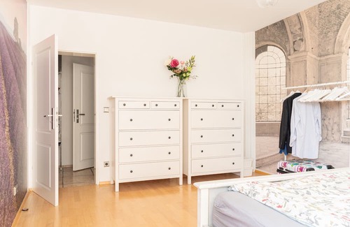 Located in Düsseldorf, the holiday apartment "Elegante Am See" has everything you need for a relaxing stay. The 127 m² property consists of a living room with a sofa bed for 2 people, a fully-equipped kitchen, 3 bedrooms, 1 bathroom, and an additional toilet, and can accommodate 7 people. On-site amenities include high-speed Wi-Fi (suitable for video calls), a dedicated workspace for home office, a smart TV with streaming services, a washing machine, a dishwasher, and a selection of children's books and toys.