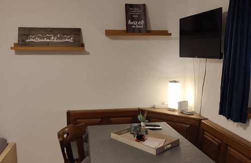 The warm atmosphere of the studio is pleasantly rounded off by underfloor heating in all rooms, which ensures cosy warmth at any time of year. Culinary enthusiasts will find everything they need to prepare simple meals in the small but perfectly formed kitchenette with a 2-ring hob, kettle and coffee machine, including capsules. Raclette and fondue dishes are also available to fully savour the regionality of Swiss cuisine.