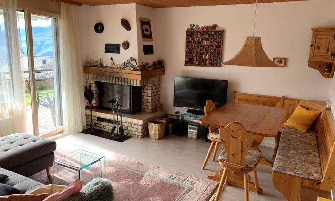 The bright 2-room flat on the mezzanine floor with all windows facing south and a garden seating area with lawn that enjoys sun all day long offers a dream view over the Surselva and the Vals Valley. In front of you is the mountain village of Falera with its fantastic winter offer. 28 modern lifts, 4 snow parks and 235 kilometres of internationally award-winning pistes in one of the snowiest ski areas in Switzerland are at your disposal. You can reach the valley station in just a few minutes (400m) without any incline and the piste is almost in front of the house when you get home. Many great cross-country ski trails can be reached with the free shuttle bus and snowshoeing with groomed trails from Falera is a hit.