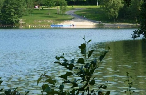 The detached house 200 enjoys a quiet location in the holiday park at Silbersee, Frielendorf, and has a beautiful and newly renovated holiday apartment in the basement with 55m² of living space. It consists of two separate bedrooms with a double bed and two single beds. Bed linen is included. Wireless Internet access is available. There is a bathroom with a shower, WC and washbasin, as well as a hairdryer. The living room with satellite TV has a generous amount of space and a dining corner for meals together, which you can prepare in the fully-equipped kitchen, with an oven, a stove with a ceramic hob, a microwave, a dishwasher, toaster, coffee machine, fridge, kettle, bread machine, mier and ample crockery and cutlery.