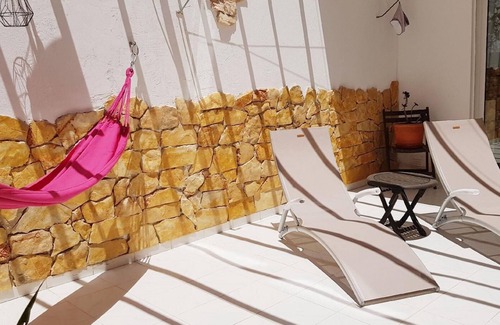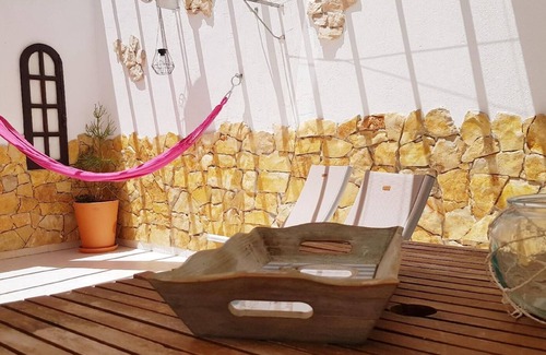 Step outside to discover a 30 sqm courtyard, artfully designed in the typical Algarve patio style. This private outdoor space is an ideal spot for grilling, sunbathing, unwinding, and enjoying the enchanting evenings under a starlit sky. It offers a serene retreat where you can relish the gentle summer breeze and the beauty of your surroundings in privacy.