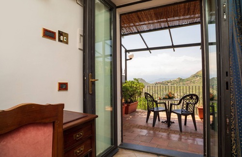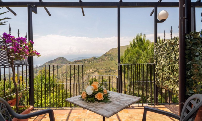 150 meters from the center of Castelmola, the area is equipped with everything you need. Opposite the holiday apartment is the Interbus stop, from which buses take you to Taormina center approximately every hour.