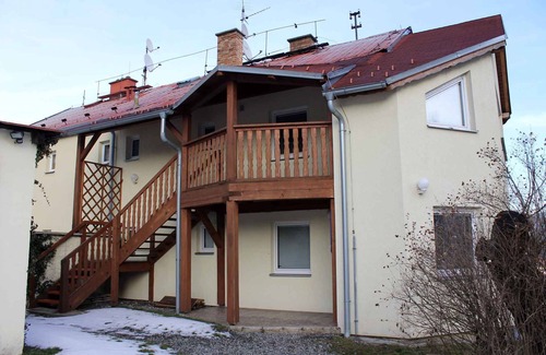 The holiday apartment is located in a standig individually detached house, renovated in 2004 and is modern furnished. The property is located in a residential area. The domicile is also popular because of the quiet location. For common use are available: grill possibility, pavilion and garden furniture.LocationLoučovice, 750 m above sea level. The holiday apartement is located on a 800 sqm, closed garden plot, limited by a fence. The landlord does not live in the house or on the property. The access goes via a side road (asphalted). Parking lot (for 2 cars) on the property. SpecialAir conditioning / heating: electric heating. (Receiving Austrian programs). Dogsallowed, EUR 7.00/pet per day. DistancesShopping opportunity 200 m, restaurant 250 m, town center 500 m. Lipno nad Vltavou with harbor, restaurants, café and indoor swimming pool 3 km. UNESCO town of Cesky Krumlov with its historic town center, castle and castle 40 km.In summer: Lipno Dam 3 km in Lipno nad Vltavou. Lipno nad Vltavou: tennis, fishing, boat rental each 3 km. golf 4 km. Ninepins and soccer field in the village.In the winter: Ski lift 3 km in Lipno nad Vltavou. Ski area 3 km in Lipno nad Vltavou (Kramolin). trail in 100 m. ski rental, ski school each 3 km in Lipno nad Vltavou. DivisionHoliday apartment, 1 floor, 4 rooms (including 3 bed rooms), 45 sqm, in total 6 beds. Smoking is prohibited in the property. RoomThe entrance in your holiday apartment is located on the ground floor and leads directly in the hallway with sitting area. Living room (walk-through room) with TV and dining area (6 seats). Bedroom with 1 single bed. Bedroom with 3 single beds. Bedroom with 1 double bed. Cooking nook in the living room with electric stove, oven, fridge, microwave, coffee machine, toaster and electric kettle. Bathroom with shower, 1 sink, WC and window. Terms of lease and pricesIncluded in the priceparking place, electricity, water, final cleaning, bed linen, hand towels. Side costs-Costs on the spot:/Obligatory:local tax by local tariff.Deposit:EUR 150,-/object