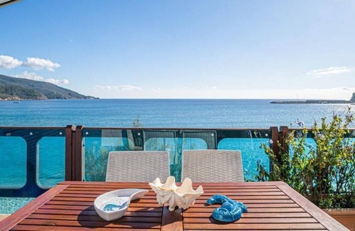 The LUNA APARTMENT is the second bright two-room apartment of 60 m2 (plus a 15 m2 private terrace overlooking the sea) which can comfortably accommodate up to 4 people. The well-kept interiors consist of a double bedroom, a living room with sofa bed for 2 people and a bathroom with tub. The kitchen of this apartment is located directly on the wonderful terrace, well sheltered by a large electrically controlled roof awning. Preparing lunch and dinner while admiring the sea will make your holiday in this apartment even more special! Here too, in the evening you can dine on the terrace or have an aperitif while admiring the wonderful view over the entire gulf.