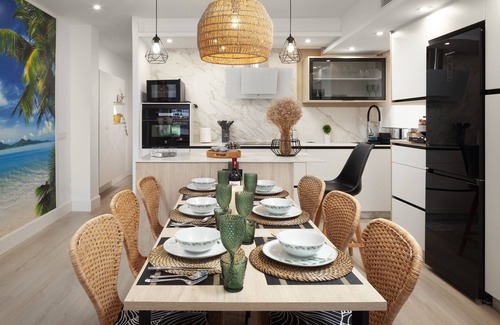 The holiday apartment "Mediterráneo" is located in Rincon de la Victoria and boasts a beautiful view of the Mediterranean Sea. The 98 m² property consists of a living room, a fully-equipped kitchen, 3 bedrooms (one of them with dressing room) and 2 bathrooms, and can accommodate 6 people. Available amenities include a smart TV with streaming services, central air conditioning throughout the apartment, a fan, a capsule coffee machine, and a washing machine and a dishwasher. A baby cot is also provided.