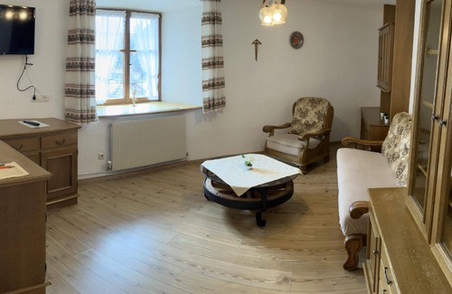 This castle near the tri-border region, which dates back to the 12th century, offers two apartments of different sizes, with a perfect combination of a rustic flair and modern furnishing, which will delight you. The apartments are comfortably furnished and extensively equipped, so that couples, families and friends have ample comfortable space. The holiday apartment is for up to four people and has 70m² of living space, while the other apartment is for up to six people and measures 90m². The apartments have separate bedrooms each for two people, a comfortable and well-equipped living room-kitchen with a cosy lounge area, and a spacious bathroom.