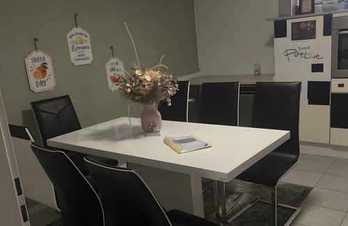 The holiday apartment Near Europa Park, located in Wyhl am Kaiserstuhl, offers everything you need for a comfortable holiday. The 121 m² accommodation consists of a living room, a kitchen, two bedrooms, and a bathroom, and can accommodate up to seven people. Amenities include Wi-Fi with a dedicated workspace for home office, a smart TV with streaming services, and a washing machine. A baby cot is also available. Towels are provided free of charge. The holiday home features a private outdoor area with a garden, barbecue, and playground. There is also a separate open terrace with a barbecue area for relaxing evenings. A parking space is available on the property, and free parking is available on the street. Pets are allowed. Smoking is only permitted outdoors, and parties are not allowed. The accommodation offers a convenient self-check-in system. After booking, you will be asked to fill out a contact form that will be sent to you to best prepare your stay.