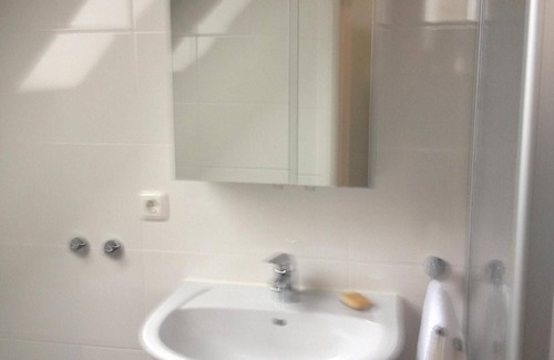This is a light apartment, and very cosy due to its sloped ceilings. It measures around 30m² and is non-smoking. It is suitable for two people. It has a kitchen unit with a two-ring ceramic hob, a fridge with a freezer compartment, a coffee machine, kettle and toaster. All the appliances are new and in top condition. An LED flatscreen TV with a satellite receiver, wireless Internet access and a radio alarm provide entertainment. There is generous storage space. Owing to the under-floor heating it is pleasantly warm all year round. Bed linen, towels and a bathroom mat are provided, but not beach towels. There is a double bed measuring 180 x 200cm. The bathroom has a shower and WC.