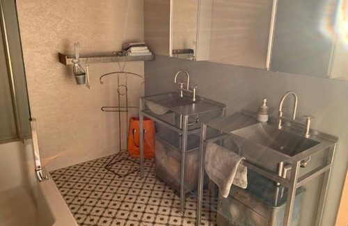 The barrier-free and stairless studio (door threshold 3cm, door width 100cm) with its spacious modern kitchen and stylish bathroom (shower bath with side access door, 5.5cm step) is underfloor heated. We heat with wood from our own forest and with solar energy for hot water. We have deliberately avoided carpeted floors and favoured LED lighting. Our 4 hectares of meadowland around the farm are cultivated in a natural way.