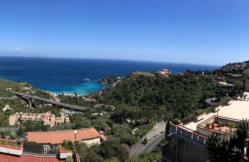 It is an elegant and bright two-room flat with an enchanting 360-degree view of the bay of Mazzaró, Capo S. Alessio, the Ionian coast with the picturesque medieval village of Forza D'Agrò, the Calabrian coast, the Peloritani Mountains and the blue Ionian Sea. The flat is located in a quiet residential area in a position away from the hustle and bustle of the city centre, which can be reached in 10 minutes on foot. This delightful flat will suit you whether you decide to spend only a few days there or stay longer to enjoy the beauty and entertainment that Taormina has to offer. You will find everything you need to feel at home!