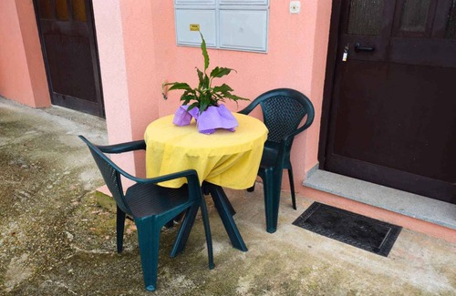 The holiday apartment is furnished in a typical country style. The property is located on the outskirts. Also due to its quiet location the domicile is popular. Available for shared use: barbecue facilities.LocationPula. The holiday apartement is located on a open plot. The landlord does not live in the house or on the property. Access is via a path (asphalted). Parking is available on the street in front of the house. Specialair conditioning.Facilities: internet access (WLAN). TV reception takes place via satellite. Dogsallowed, EUR 5.00/pet per day. DistancesShopping 100 m, restaurant 200 m, town center 2,5 km. sauna in 400 m. Pula: discotheque, cinema each 2,5 km. railway station 3 km. In summer: Jadranska obala 1200 m in Pula (beach 1200 m in Pula featuring gravel, stones and rocks). horse riding in Medulin 10 km. Pula: tennis, boat launch each 1500 m. fishing, diving each 2 km. Sandy beach 10 km. DivisionHoliday apartment, 1 floor, 2 rooms (including 1 bedroom), 38 sqm, in total 2 beds. RoomThe entrance to your holiday apartment is located on the ground floor. Living room with sitting area, TV, dining area (2 seats) and access to the terrace (10 sqm, garden furniture, 1 table, 2 chairs, parasol). Bedroom with 1 double bed. Cooking nook in the living room with gas stove (2 flames), electric stove (2 plates), oven, fridge (icebox), microwave, coffee machine and toaster. Bathroom with washing machine, shower and WC. Terms of lease and pricesIncluded in the priceinternet access, parking place, electricity, water, final cleaning, Bed linen (weekly change), hand towels (weekly change), Wireless Internet access. Side costs-Additionally(Payable when booking)/registration fee obligatory 3,80 € per person per stay. local tax.Costs on the spot:/Obligatory:air conditioning 5 € per object per day.Deposit:EUR 100,-/object