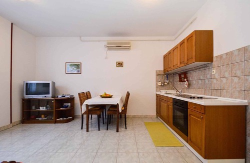 The holiday apartment is located in a single-family home and is furnished in a functional style. The property is located in a residential area, on the outskirts. Also due to its quiet and sunny location the domicile is popular. Available for shared use: barbecue facilities, terrace and garden furniture.LocationPula. The holiday apartement is located on a enclosed garden plot with flowers and shrubs, bordered by a fence. The landlord lives permanently in the house, but uses a seperate entrance. In the same house is still the apartment IST PUL 430 (4 people). Access is via a side road (asphalted). Parking is available on the property. Specialair conditioning.Facilities: internet access (WLAN). TV reception takes place via satellite. Dogsallowed, EUR 5.00/pet per day. DistancesShopping 150 m, restaurant 450 m, town center 2 km. The nearest public transport stop is 200 m away. sauna in 300 m. Pula: discotheque 1400 m and airport 8 km. Pharmacy 500 m, hospital 2 km. In Pula you will find a bicycle - car and moped rental, table tennis, bowling, bowling, hair salon, beauty salon, Tazcafes, restaurants, bars and shops. In summer: Bathing possibility 900 m in Pula (beach 900 m in Pula featuring gravel and bathing plateaus). Pula: boat launch 1200 m and diving 1400 m. DivisionHoliday apartment, 1 floor, 2 rooms (including 1 bedroom), 53 sqm, in total 4 beds (including 2 additional beds). RoomThe entrance to your holiday apartment is located on the ground floor, is at ground level and leads directly into the vestibule. Bedroom with 1 double bed and 1 additional bed on bed (smaller 2.00 x 0.90 m). Living/bedroom (25 sqm) with 1 additional bed on couch/sofa, sitting area, TV, dining area (4 seats) and (10 sqm, covered, garden furniture). Cooking nook in the living & bedroom with electric stove (4 plates), oven, fridge (icebox) and coffee machine. Bathroom with shower, 1 washbasin, WC and window. Terms of lease and pricesIncluded in the priceinternet access, parking place, electricity, water, final cleaning, bed linen, hand towels, Wireless Internet access. Side costs-Additionally(Payable when booking)/registration fee obligatory 3,80 € per person per stay. additonal fee for short-term stays (less than 4 nights) obligatory 20% per stay. local tax.Costs on the spot:/On request:air conditioning 5 € per object per day.Deposit:EUR 150,-/object