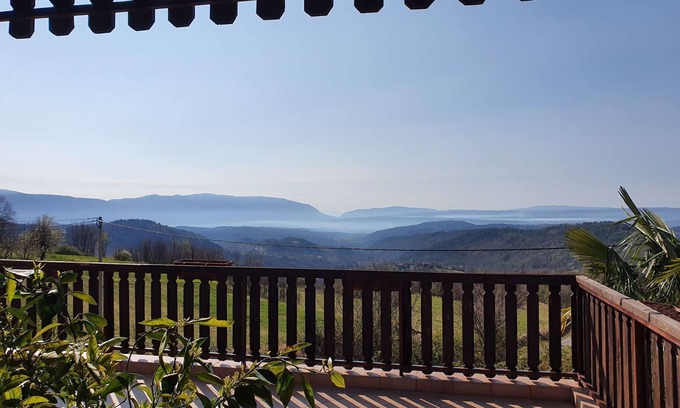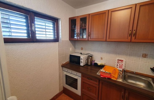 The holiday apartment is located in a detached single-family home built in 2000 and is furnished in a functional and typical country style. The property is located on the outskirts. Also due to the view over a panorama from the property and its quiet, sunny and secluded location the domicile is popular. Available for your exclusive use: terrace and garden furniture.LocationGradinje, 200 m above sea level. The holiday apartement is located on a 114 sqm enclosed garden plot with flowers and trees, bordered by a fence and a wall. The landlord lives only occasionally in the house, but uses a seperate entrance. Access is via a side road (asphalted). Parking is available on the property. Specialair conditioning.Facilities: internet access (WLAN) and washing machine. TV reception takes place via satellite. Dogsnot allowed. DistancesShopping 5 km, restaurant 5 km, town center 15 km. airport in Pula 65 km. In summer: Adriatic sea 39 km in Mošćenice (beach 39 km in Mošćenice featuring gravel, stones, rocks and bathing plateaus). DivisionHoliday apartment, 1 floor, 4 rooms (including 3 bedrooms), 50 sqm, in total 6 beds. RoomThe entrance to your holiday apartment is located on the 1st floor