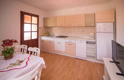 The holiday apartment is located in an apartment house and is furnished in a modern and rustic style. The property is located on the outskirts. Available for use: barbecue facilities and garden furniture.LocationVeli Lošinj. The holiday apartement is located on a enclosed plot, bordered by a wall. The landlord lives permanently in the house. The house also has the Ferienwohung KVA LOS 189 is (5 persons). Access is via a side road. Public parking 150 m. Specialcentral heating.Facilities: internet access (WLAN) and washing machine. TV reception takes place via satellite. Dogsnot allowed. DistancesShopping 600 m, restaurant 400 m, town center 800 m. discotheque in Mali Losinj 3,5 km. Marina 500 m, ambulance 450 m, pharmacy 3500 m, sports grounds 400 m, main road 250 m. In summer: Adriatic Sea 600 m in Rovenska (beach 600 m in Rovenska featuring gravel and stones). DivisionHoliday apartment, 1 floor, 2 rooms (including 2 bedrooms), 51 sqm, in total 4 beds. Room 2 bedrooms each with 1 double bed. Kitchen with dining area, gas stove, dishwasher, fridge (icebox) and coffee machine. Bathroom with washing machine, shower and WC. Terms of lease and pricesIncluded in the priceinternet access, electricity, gas, water, bed linen, hand towels. Side costs-Additionally(Payable when booking)/final cleaning obligatory 39 € per object per stay. additonal fee for short-term stays (less than 4 nights) obligatory 30% per stay. local tax.Costs on the spot:/Obligatory:registration fee 2,50 € per person per stay.Deposit:EUR 150,-/object