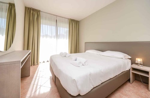 4 stars, 22 accommodations, bar and internet (WLAN). LocationDesenzano del Garda. The holiday apartement is located in a residence, on a garden plot with meadow, flowers and trees. The access goes via a path (asphalted). Parking lot (for 1 car) in the garage. Specialair conditioner, central heating. Facilities: internet access (WLAN) and phone. TV reception takes place via satellite. PoolOutdoor pool (6 m x 12 m, depth 1.5 m, for common use). The pool facility can be used from mid of April to the end of October. Dogsnot allowed. DistancesShopping opportunity 240 m, restaurant 200 m, town center 800 m. Desenzano del Garda: bank 180 m, doctor 2,2 km and railway station, pharmacy each 750 m. cinema in Lonato del Garda 7,5 km. thermal bath in Sirmione Thermal SPA 9,1 km. airport in Verona Valerio Catullo 33,5 km.In summer: Lago di Garda 500 m in Desenzano del Garda (beach 1300 m in Desenzano del Garda with gravel and stones). tennis in Desenzano del Garda 1,9 km. DivisionHoliday apartment, 1 floor, 3 rooms (including 2 bed rooms), 75 sqm, in total 4 beds. RoomThe entrance in your holiday apartment leads directly in the living room / bedroom. Slippers and toiletries are provided upon arrival, along with two 0.5 liter bottles of mineral water. The apartment is on the first or second floor. 2 bedrooms each with 1 double bed. Living/bedroom with 2 extra beds on couch/sofa (only suitable for children), TV, dining area (6 seats) and access to the balcony (garden furniture). Cooking nook in the living room / bedroom with electric stove (2 plates), extractor hood, fridge, microwave and electric kettle. Bathroom with shower, 1 sink and WC. Credit cardsVisa, MasterCard. Terms of lease and pricesIncluded in the priceOutdoor pool, internet access, garage, air conditioning, electricity, gas, water, heating, final cleaning, local tax (under 12 years), Bed linen (weekly change), bed linen (first usage), hand towels (weekly change), hand towels (first usage), Wireless Internet access. Side costs-Costs on the spot:/Obligatory:final cleaning of the kitchen to be carried out individually. dish towels to bring along. local tax by local tariff (if charged).On request:hand towels 8 € per person per change. baby cot – please order at booking 10 € per bed per day. Breakfast - please order at booking 14,75 € per person per day. For a fee: bicycle.Deposit:No deposit.