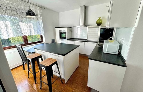 The holiday apartment is located in a detached single-family home and is furnished in a functional and typical country style. The property is located in the town centre. Also due to the view over the sea from the property and its quiet and sunny hillside location the domicile is popular. Available for your exclusive use: barbecue facilities, terrace and garden furniture.LocationJadranovo. The holiday apartement is located on a open garden plot with meadow, flowers and shrubs. The landlord lives permanently in the house, but uses a seperate entrance. Access is directly from the main road (asphalted). Parking (for 2 cars) is available on the property. Specialair conditioning.Facilities: internet access (WLAN). TV reception takes place via satellite.For your safety, the accommodation is equipped with smoke detector. Dogsnot allowed. DistancesShopping 200 m, restaurant 200 m, town center 350 m. discotheque, doctor, pharmacy, bank each 6 km in Crickvenica. indoor swimming pool in Dramalj 3 km. Rijeka: airport 16 km and cinema 30 km. In summer: Adriatic Sea 300 m in Jadranovo (beach 300 m in Jadranovo). DivisionHoliday apartment, 1 floor, 4 rooms (including 3 bedrooms), 130 sqm, in total 8 beds (including 2 additional beds). RoomThe entrance to your holiday apartment is located on the 1st floor