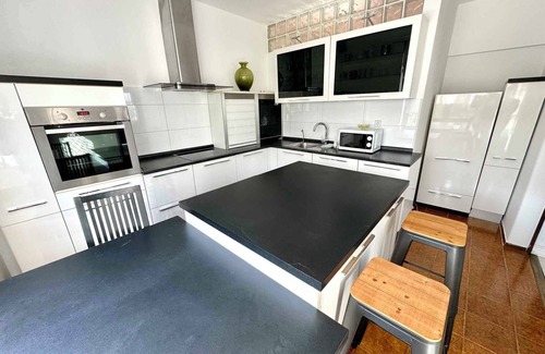 , is at ground level and leads directly into the hallway. 2 bedrooms each with 1 double bed. Living/bedroom with 1 double bed, TV, dining area (2 seats) and access to the balcony. Kitchen with TV, dining area (2 seats), fridge, microwave, coffee machine, electric kettle and access to the balcony. Kitchen with dining area (6 seats), electric stove, oven, fridge, microwave, coffee machine and electric kettle. 2 bathrooms each with shower, 1 washbasin and WC. Bedroom. Terms of lease and pricesIncluded in the priceinternet access, air conditioning, electricity, gas, water, final cleaning, Bed linen (weekly change), hand towels (weekly change). Side costs-Costs on the spot:/Obligatory:registration fee 5 € per person per stay. local tax by local tariff.Deposit:No deposit.