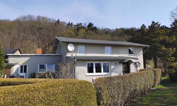 The holiday apartment is located in a single-family home, was renovated in 2020 and is furnished in a modern style. The property is located on the outskirts. Also due to its quiet and sunny location the domicile is popular. Available for use: parasol, barbecue facilities and garden furniture. garden seating.LocationLietzow/Rügen. The holiday apartement is located on a 500 sqm open garden plot with meadow, flowers, shrubs and trees. The landlord lives permanently in the house. The place is between the large and small Jasmund Bodden. From the apartment you look at the small Jasmund Bodden. Parking (for 1 car) is available on the property. Specialcentral heating.Facilities: children's toys, high chair and iron. TV reception takes place via satellite. Dogsnot allowed. DistancesShopping 250 m, restaurant 400 m, town center 250 m. railway station in 100 m. indoor swimming pool in 10 km. discotheque, cinema each 15 km in Bergen. sauna, doctor, pharmacy each 6 km in Sagard. Railway line 100 m. Main road 500 m. Children's playground 600 m. In summer: Großer Jasmunder Bodden 4,5 km (beach 600 m featuring sand). DivisionHoliday apartment, 1 floor, 2 rooms (including 1 bedroom), 60 sqm, in total 3 beds. RoomThe entrance to your holiday apartment is located upstairs and leads over an internal staircase directly into the hallway with wardrobe and doors to all rooms. Bedroom with 2 single beds. Living/bedroom with 1 single bed, sitting area, TV and radio. Kitchen with dining area (4 seats), electric stove (ceramic hob, 2 plates), fridge (icebox), coffee machine, toaster and electric kettle. Bathroom with shower, 1 washbasin, WC, hairdryer and window. BoardOn site you can book bread roll service (ordered goods must be paid on the spot). Terms of lease and pricesIncluded in the pricehigh chair, parking place, electricity, water, heating, bed linen, hand towels, Welcome drink. Side costs-Costs on the spot:/Obligatory:final cleaning 50 € per object per stay.Deposit:EUR 100,-/object