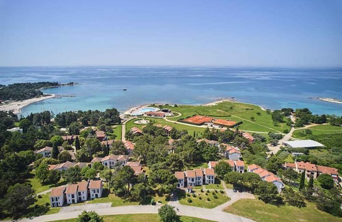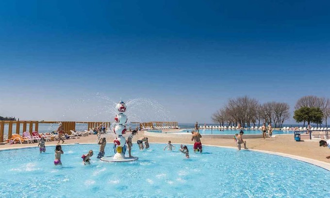 The holiday apartment is modern furnished. The property is located in a residence. This property is a family-friendly accomodation. For use are available: sun lounger and children's playground.Holiday resortreception and 1 restaurant. LocationUmag. The holiday apartement is located in a residence. Parking lot on the property. SpecialFacilities: internet access (WLAN). TV reception takes place via satellite. PoolOutdoor pool. Children's pool. LeisureSPORT - volleyball and table tennis free of charge - for a fee: beach volleyball; Katoro multi-purpose field – football, handball, basketball and volleyball; bike rental; Water sports - parasailing, windsurfing, canoes, banana boat rides, pedal boat rentals, jet skis; equestrian center; Umag Tennis Academy: 26 tennis courts, including 25 on clay and 1 hard court, 4 covered clay courts; Park & Ride station: manual and automatic e-bike rental system Dogsallowed, EUR 16.00/pet per day. DistancesShopping opportunity 3 km, restaurant 3 km. airport in Pula 85 km. Umag: railway station, pharmacy each 3 km. doctor 500 m.In summer: Adriatic Sea 250 m in Umag. DivisionHoliday apartment, 1 floor, 2 rooms (including 1 bed rooms), 38 sqm, in total 5 beds (including 3 additional beds). Room Bedroom with 2 single beds. Living/bedroom (walk-through room) with 3 extra beds on couch/sofa, sitting area, TV and dining area. Kitchenette (walk-through room) with dining area, electric stove, fridge and electric kettle. Bathroom with shower, 1 sink and WC. BoardBreakfast. Dinner. Half-board. It is possible to book breakfast/dinner, half board service only for the entire period of stay and for all guests in the apartment. Terms of lease and pricesIncluded in the priceelectricity, gas, water, final cleaning, bed linen, hand towels, Wireless Internet access. Side costs-Additionally(Payable when booking)/local tax.Costs on the spot:/On request:half-board 11 € per person under 14 years per day. half-board 22 € per person per day. parking place 1,20 € per car per day. breakfast 3,50 € per person under 14 years per day. breakfast 7 € per person per day. dinner 7,50 € per person under 14 years per day. dinner 15 € per person per day. For a fee: half-board under 5 years, breakfast under 5 years, dinner under 5 years.Deposit:No deposit.