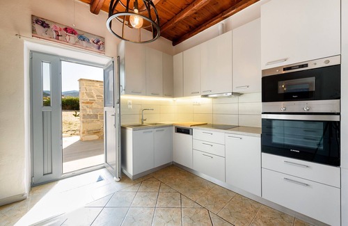 The villa boasts a wonderful sea view overlooking the Aegean Sea and Antiparos island, as well as access to a secluded little beach for your enjoyment.