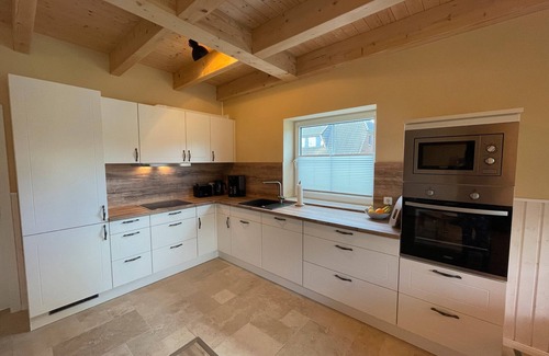 Dat Nordseehus is a pet-free and allergy-friendly holiday home that creates a particularly pleasant feel-good atmosphere through the use of natural materials. Smoking is not permitted in this house to ensure a clean and healthy environment. On the ground floor, you will find the spacious living-dining kitchen, a second bedroom, a guest WC, and a utility room. Upstairs is the master bedroom with an adjoining bathroom and a walk-in shower. Smoking indoors is not allowed. Charging electric vehicles via household sockets is also prohibited.