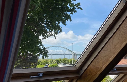 The upper floor has a large living room / bedroom with stunning views of the Fehmarn Sound and is equipped with two single beds and a separate sofa. There is also another bedroom with double bed.