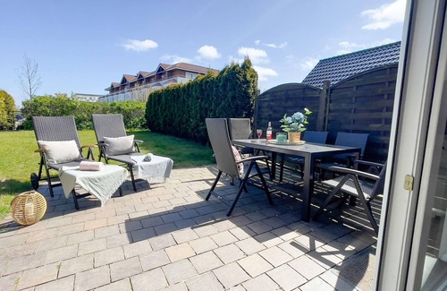 This vacation apartment offers a serene garden view, perfect for families and groups of up to 8, making it an ideal retreat near Cuxhaven's beautiful attractions.