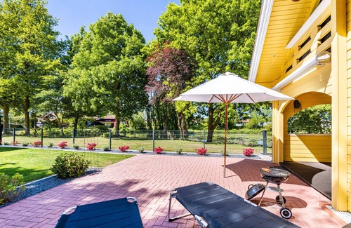 The holiday home Haus Miriam with step-free access and interior in Walchum is the perfect accommodation for an stress-free holiday with your loved ones. The 2-storey fenced property consists of a living room with a sofa bed for one person, a fully-equipped kitchen, 2 bedrooms(one bedroom is upstairs in the robber's den and is suitable for max. 2 children up to 10 years, standing height in the middle 1.80m) and 1 bathroom and can therefore accommodate 3 people. Additional amenities include Wi-Fi, a TV, a washing machine as well as a dryer. A baby cot and a high chair are also available. This vacation rental offers a secluded outdoor space with a garden, a covered terrace, and a barbecue.