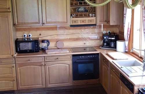 The detached holiday home built in 2016 and is furnished in a rustic and typical country style. The property is located at the end of a cul-de-sac road, in a holiday home settlement, on the outskirts. Also due to the view over a panorama from the property and its quiet, sunny and secluded location at the edge of the forest the domicile is popular. Available for your exclusive use: sunbathing lawn, parasol, sun lounger, children's playground, swing, sandpit, climbing frame, barbecue facilities, terrace, garden furniture and campfire site.LocationJílové u Držkova, 560 m above sea level. The holiday home is located on a 20000 sqm open enclosed plot with meadow, bordered by a hedce. The landlord does not live in the house or on the property. Access is via a side road (asphalted, length 500 m). Parking (for 6 cars) is available on the property. Specialcentral heating (wood & coal), electric heating, underfloor heating. Heating control in each bedroom separatelyFacilities: baby cot, internet access (WLAN) and washing machine. TV reception takes place via antenna, satellite. Smart TV connected to the Internet Poolpaddling pool. Wellnesswhirlpool. Dogsallowed, EUR 40.00/pet per stay. DistancesShopping 3 km (3 km in winter), restaurant 500 m, town center 500 m. indoor swimming pool in Jablonec nad Nisou 15 km. railway station in Navarov 3 km. airport in Praha 100 km. doctor, pharmacy, bank each 7 km in Tanvald. thermal bath in Železný Brod 5 km. Main road 2 km. Children's playground 5 m. In summer: Bathing possibility 200 m in Jílové u Držkova (beach featuring meadow). Jílové u Držkova: dog beach, fishing each 200 m. tennis 500 m. golf in Semily 15 km. In winter: Ski lift 3 km in Zásada. Ski area 10 km in Vysoké nad Jizerou Paseky nad Jizerou. ski rental, ski school, trail each 3 km in Zásada. Lyžařské středisko 10 km Paseky nad Jizerou. Ski areál Harrachov 22km, ski areál Tanvald 12km. DivisionHoliday home, 2 floors, 5 rooms (including 4 bedrooms), 170 sqm, in total 15 beds, on request additionally 1 child up to 2 years in a baby cot. RoomThe entrance to your holiday home is located on the ground floor, is covered and at ground level and leads over 1 step and the 170 sqm terrace with wardrobe and doors to all rooms. Entrance door with security lock. Property has an alarmGround floor: Living room (35 sqm) with sitting area, TV, tiled stove, radio, DVD player and access to the terrace (garden furniture). Bedroom (15 sqm) with 2 single beds. Kitchen (25 sqm) with dining area (15 seats), electric stove (ceramic hob), oven, extractor hood, dishwasher, fridge (icebox), microwave, coffee machine, toaster and electric kettle. Anteroom (9 sqm) with sitting area. Bathroom (10 sqm) with washing machine, shower, 2 washbasins, WC and window. Top floor: Bedroom (15 sqm) with 3 single beds. Bedroom (28 sqm) with 7 single beds. Bedroom (15 sqm) with 3 single beds and 1 baby cot. Bathroom (10 sqm) with whirlpool, 2 washbasins, WC, hairdryer and window. Terms of lease and pricesIncluded in the priceinternet access, baby cot, parking place, water, final cleaning, bed linen, sunloungers, Wireless Internet access. Side costs-Additionally(Payable when booking)/additonal fee for short-term stays (less than 4 nights) obligatory 40% per stay.Costs on the spot:/Obligatory:electricity 0,40 € per kilowatt hour based on usage. hand towels to bring along. local tax by local tariff.On request:chimney wood 6 € per package based on usage.Deposit:EUR 150,-/object