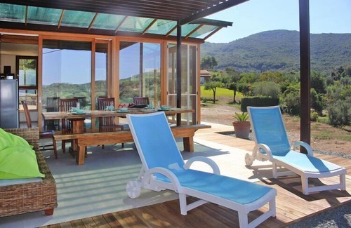 Newly built holiday home from 2018 near the beach of the bay of the seaside village of Magazzini. Located in the midst of olive groves, surrounded by greenery with a completely fenced garden, the house has a third bedroom with separate entrance and a fantastic view from the covered terrace which extends over the sea to the port city of Portoferraio. The slightly hilly area is characterized by olive groves and villas. Magazzini is a former fishing village and swimming opportunities. Activities nearby: Elba is not only a true paradise for water sports enthusiasts, but also highly recommended for cycling enthusiasts. In the hilly area the roads wind with fantastic panoramic views of the countless bays with crystal clear water. Highlights: 1 bottle of wine on arrival. Notes: -Electricity via solar panels. -The host comes regularly for garden maintenance-Mobility: Not suitable for people with reduced mobility
